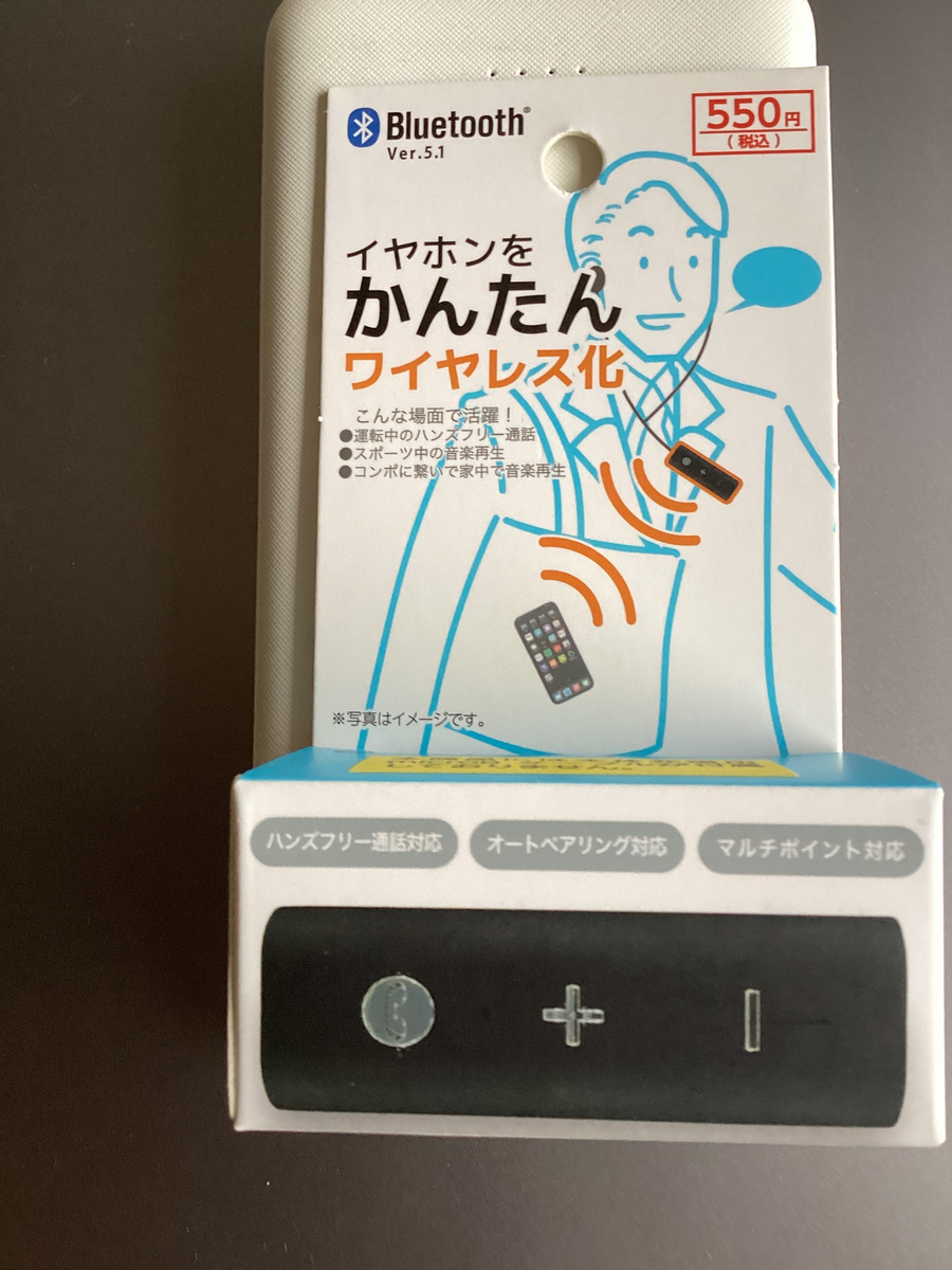 先日ダイソーでイヤホンをワイヤレス化できるデバイスを買った。