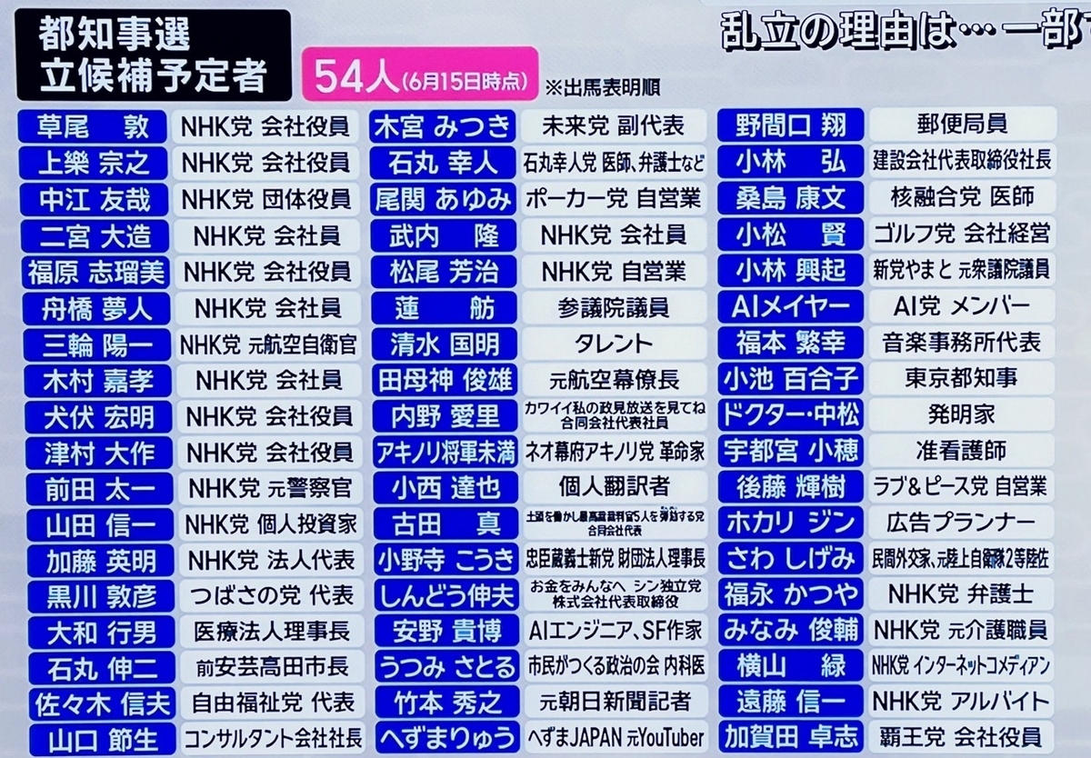 それなりにお金も掛かるはずだが、都知事選に立候補したという事実は未来にも通用する武勇伝になるはずだ。